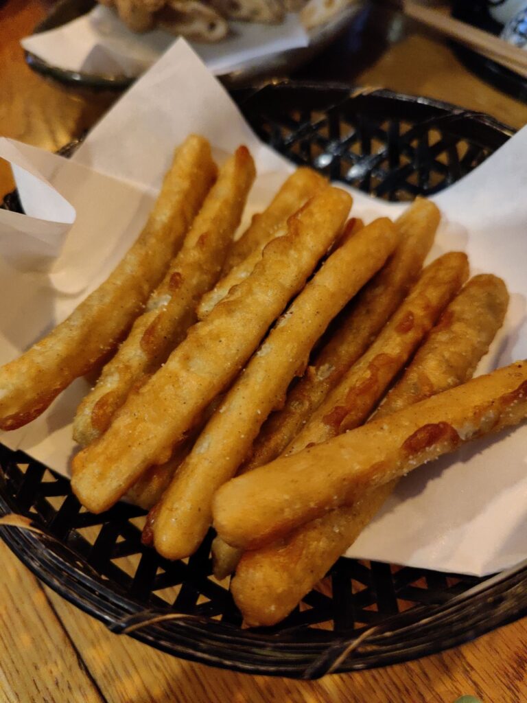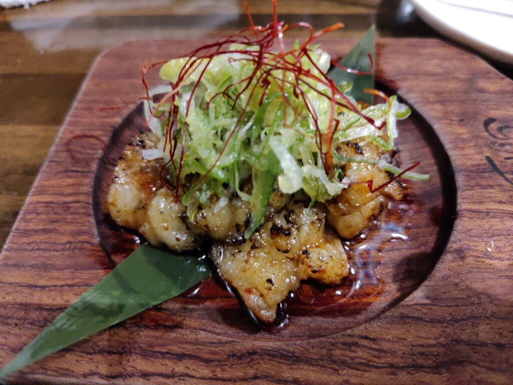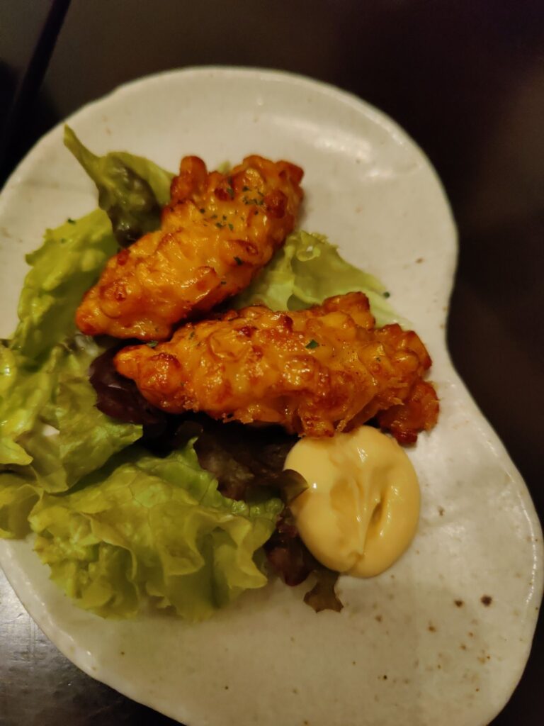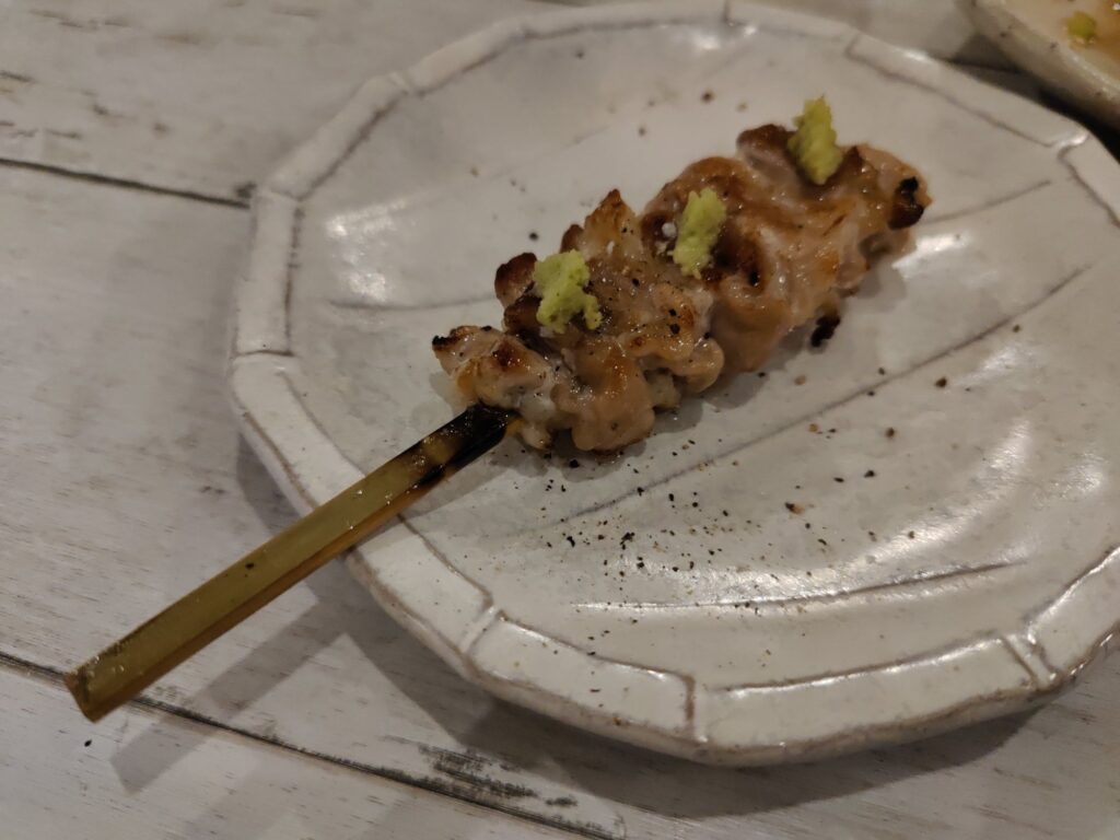 „Hormon“. Stücke des Darms. Fand ich überhaupt nicht lecker. Esse ich bestimmt nicht noch mal.
