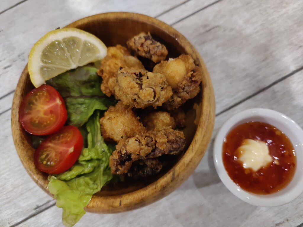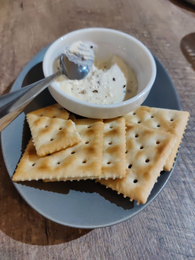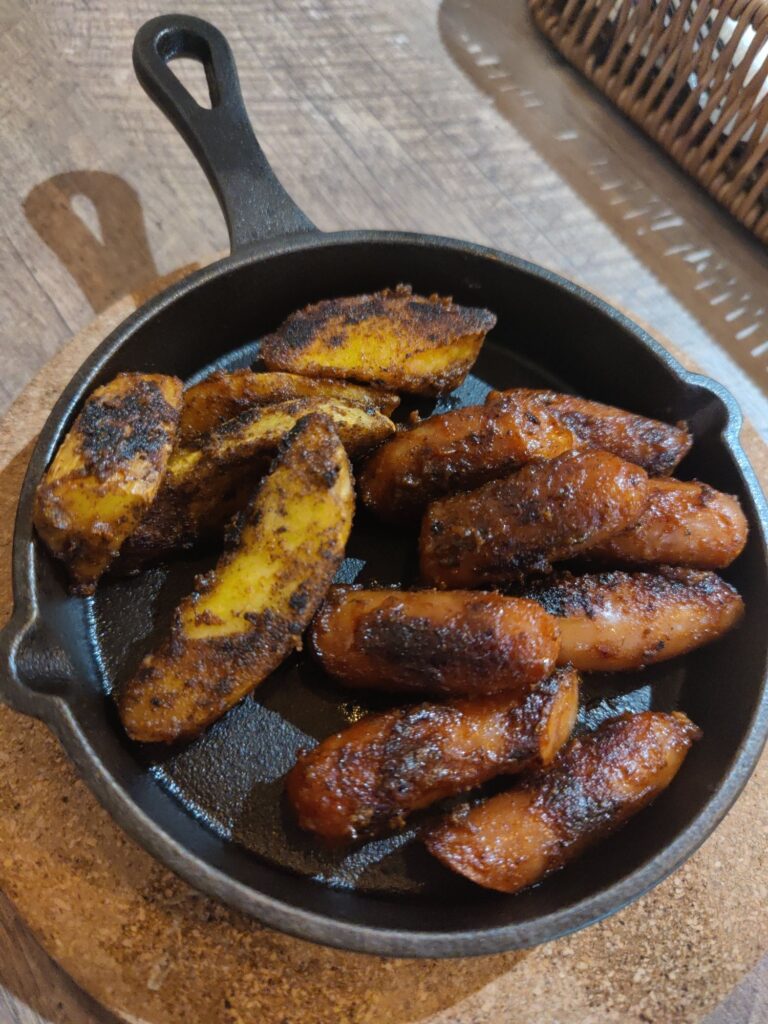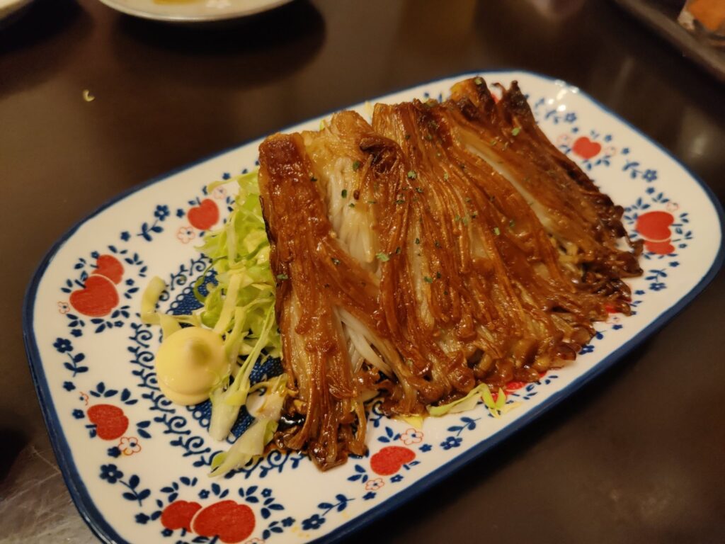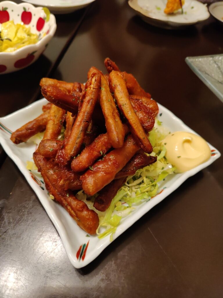 „Hormon“. Stücke des Darms. Fand ich überhaupt nicht lecker. Esse ich bestimmt nicht noch mal.