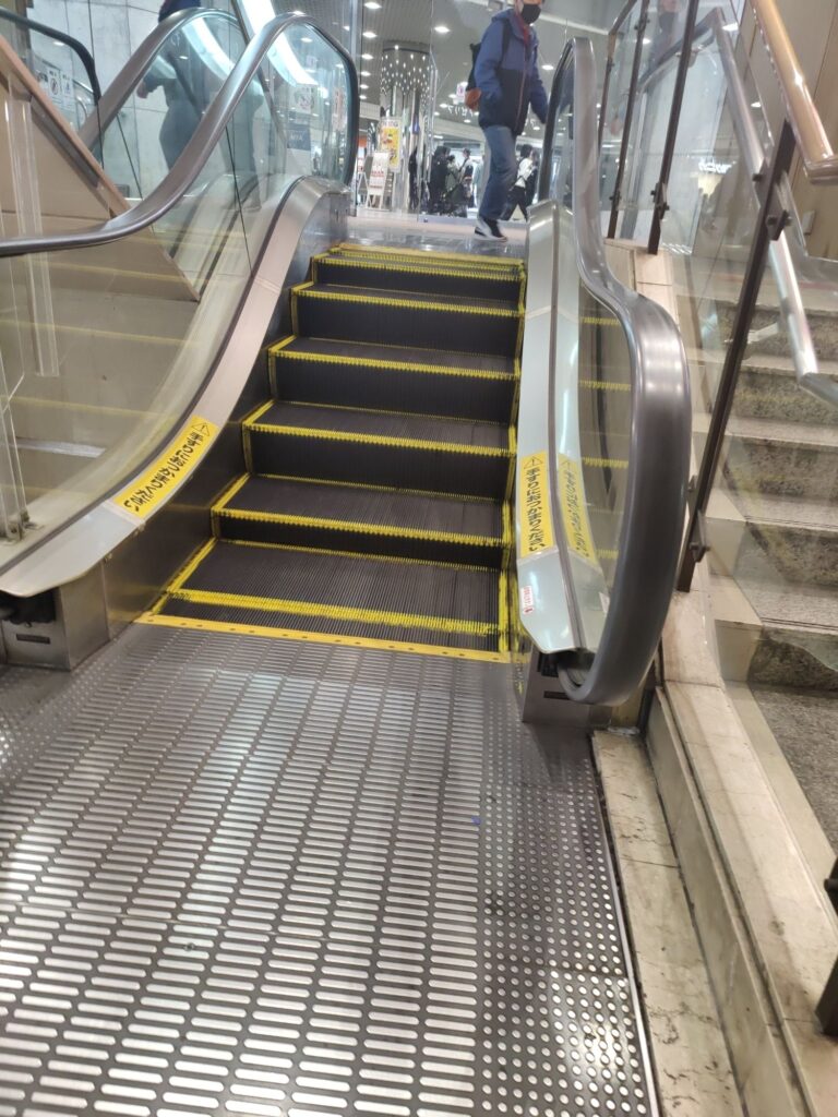Auf dem Rückweg fahren wir die angeblich kürzeste Rolltreppe der Welt.
