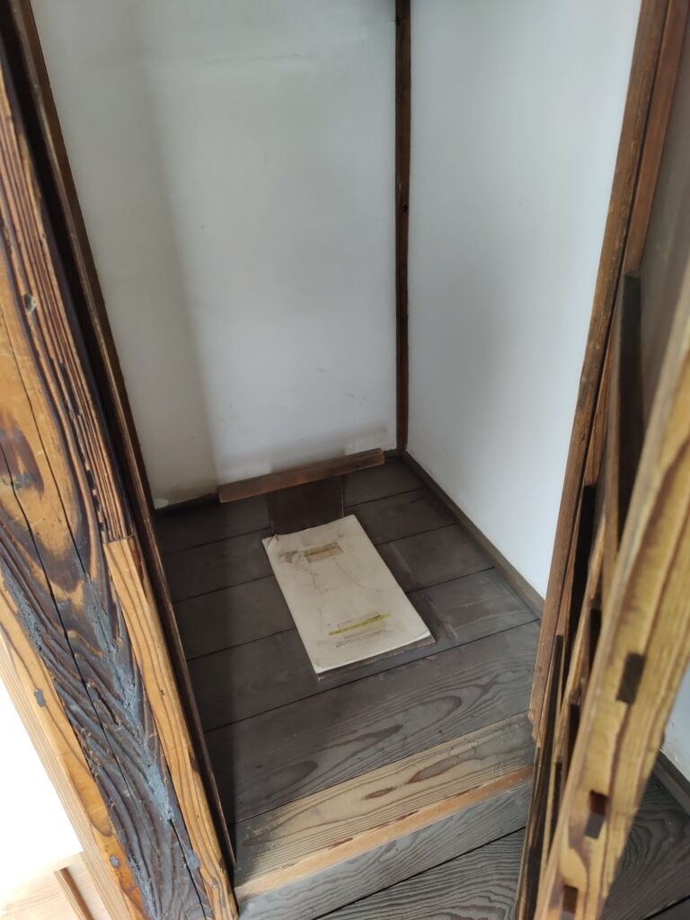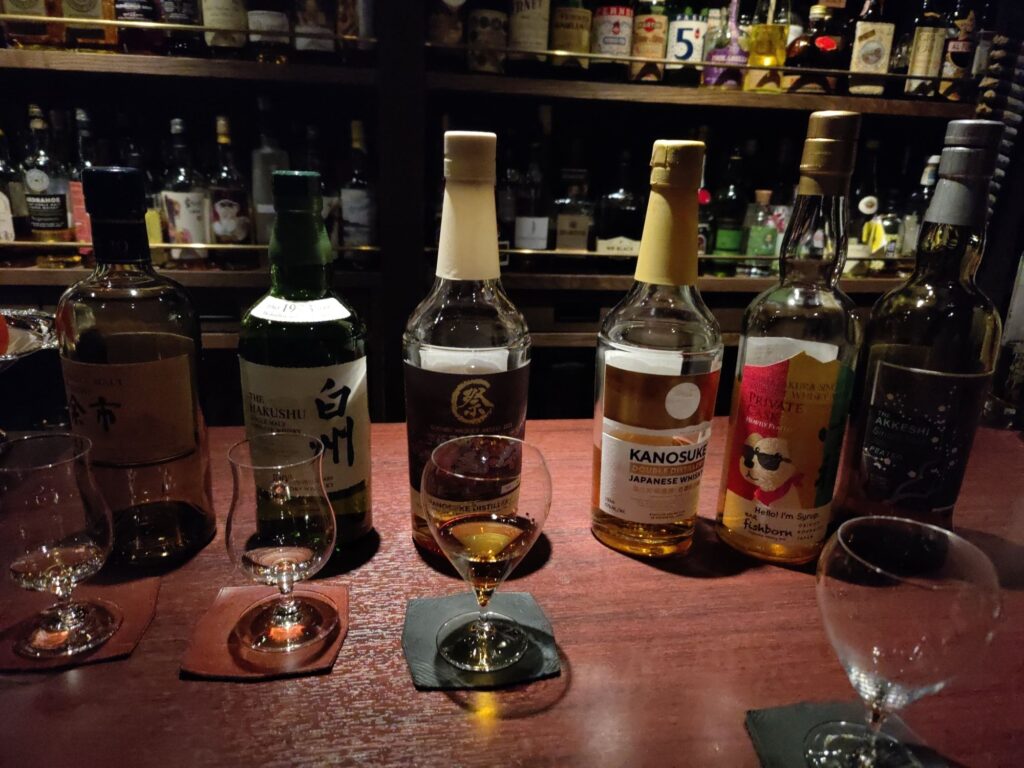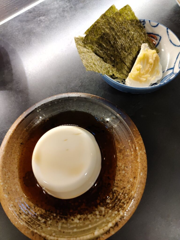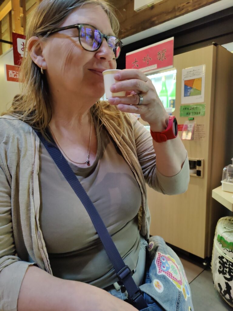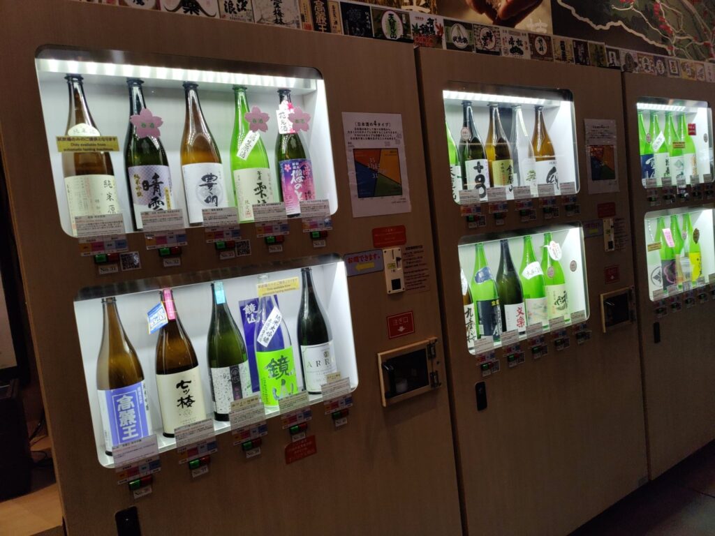 In einem der Häuser gibt es Sake-Probe am Automaten.