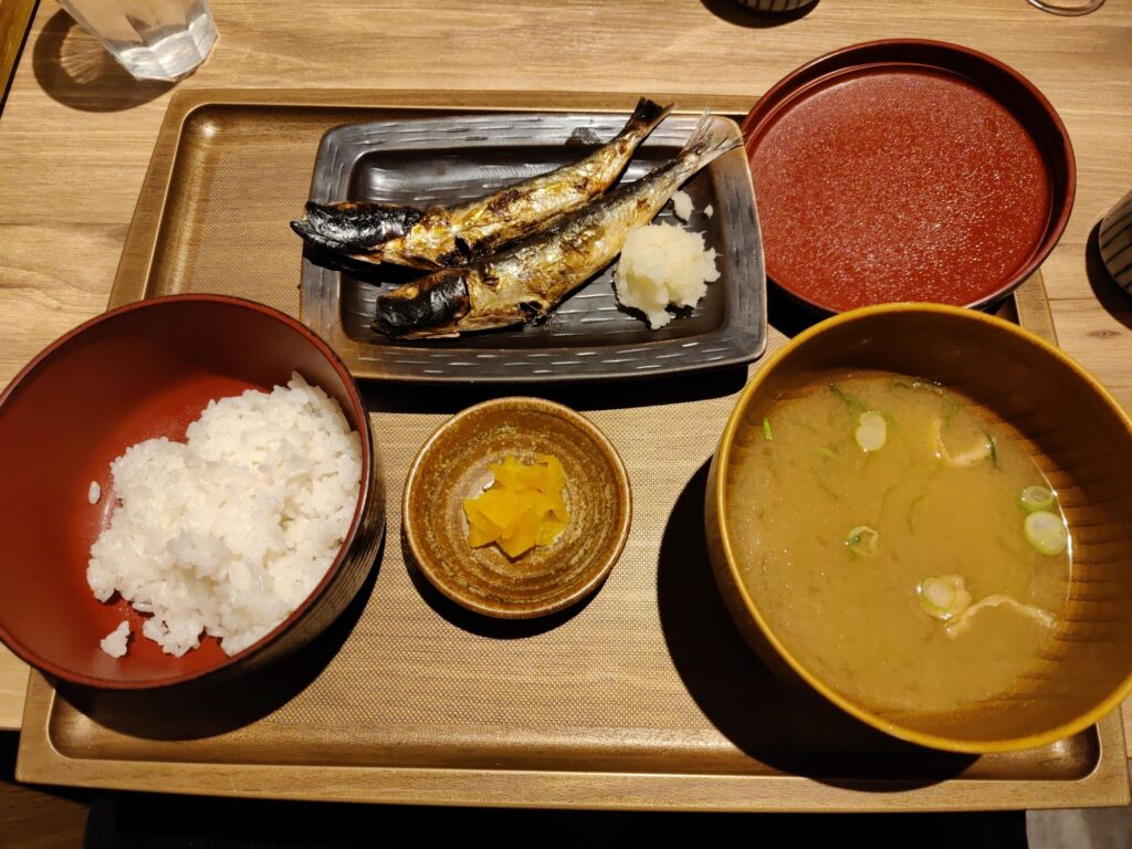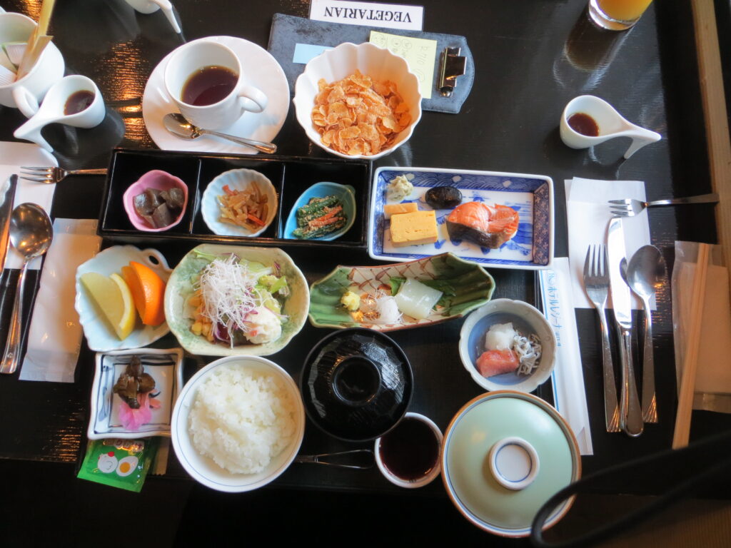 Um die Ecke ist ein kleines Ramen-Restaurant, dass auch Frühstück anbietet. Reis, Natto (fermentierte Sojabohnen), Ei, Gemüse, Fisch. Wir mögen das.