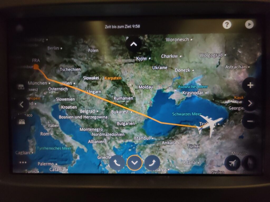 Wir verabschieden uns aus Deutschland mit typisch deutschem Verkehr. Mit Verspätung. Das Boarding begann 25 Minuten später als geplant. Und es dauert, bis eine 747 voll ist.