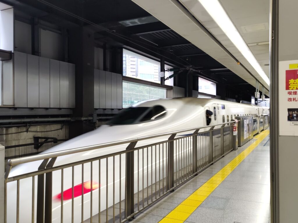 Mit der S-Bahn geht es zum Fernbahnhof um mit dem Shinkansen nach Kyoto zu fahren.