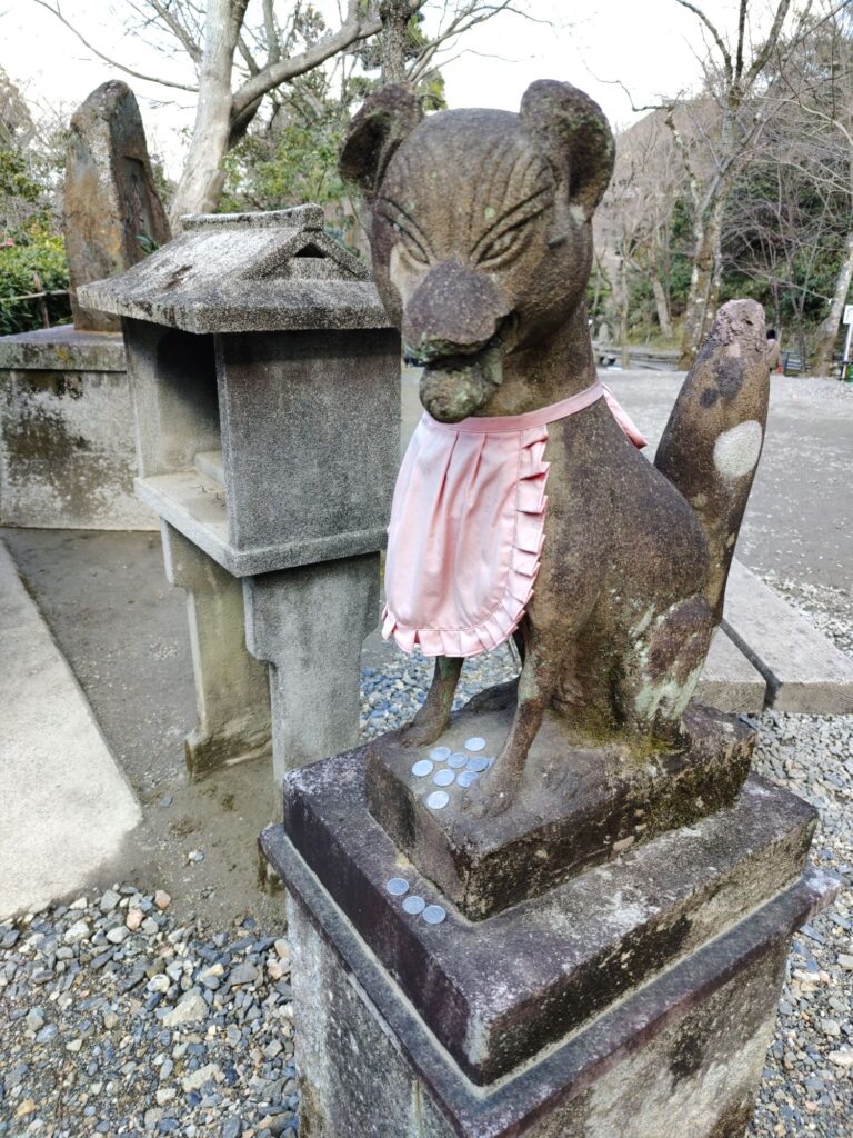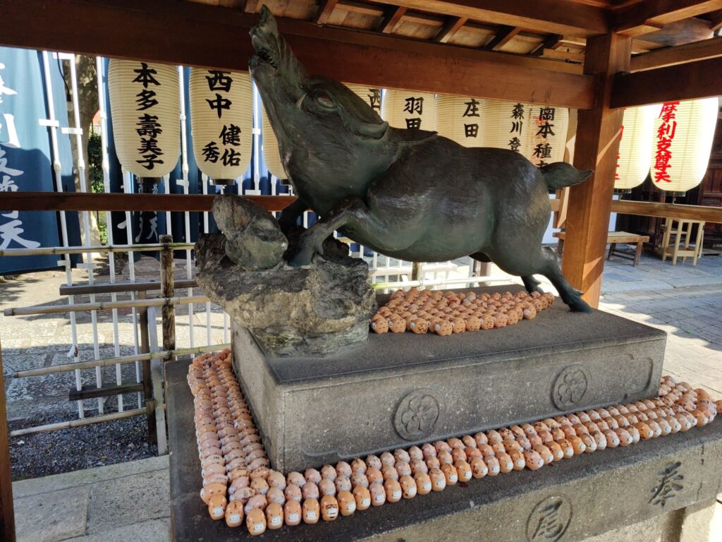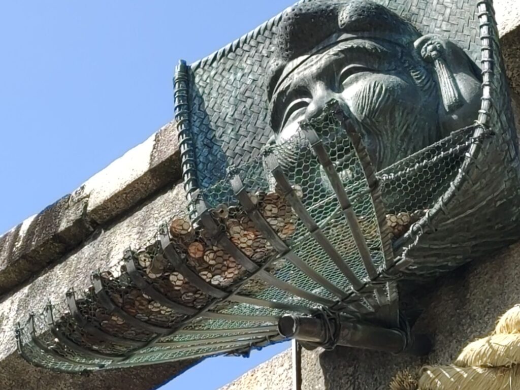 Egal, wo man in Japan entlang läuft, trifft man auf einen Schrein oder Tempel. Man könnte sich das jedes Mal ansehen, dann braucht man aber ewig bis ans Ziel. Trotzdem sah ich ich mir Unterwegs zwei an. Bei ersten warf plötzlich ein Mann eine Münze in Richtung des Eingangstores. Unter dem Gesicht in der Mitte des Tores befindet sich ein Auffanggitter. So verbindet man eben Spenden mit Sport.