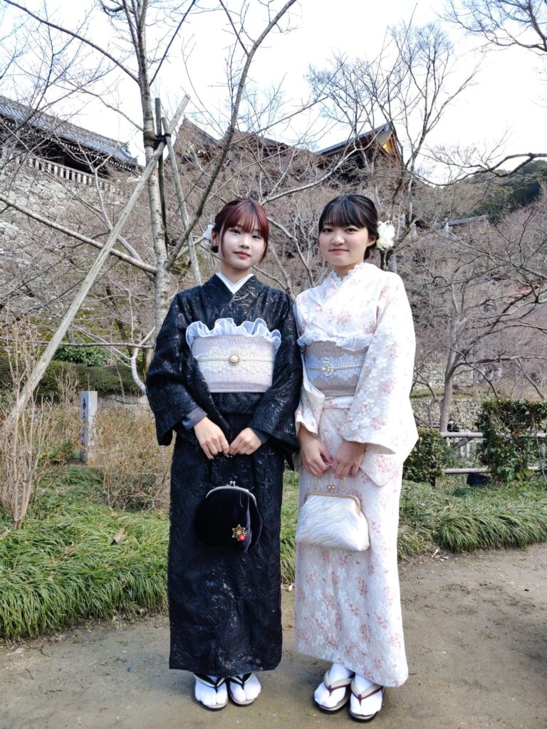 Schon heute Morgen ist uns aufgefallen, dass besonders viele Damen in traditioneller Kleidung unterwegs sind. Ich meine nicht die verkleideten Touristen, die sich im Kimonoverleih etwas ausgeliehen haben, dass so ähnlich aussieht. Die beiden Damen waren so nett, für mich zu posieren.