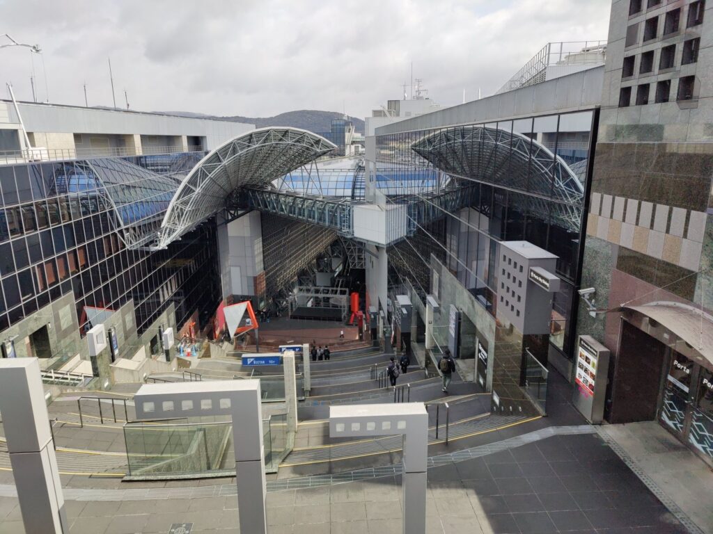 Heute war es kalt und morgens regnerisch. Ich fuhr zum Hauptbahnhof. Es ist ein ziemlich interessantes und großes Gebäude. Von den Dachterrassen kann man gut Kyoto überblicken.