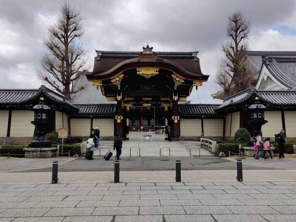 Ein paar Meter weiter ist die Tempelanlage Hongan-ji mit einem der größten Holzgebäude der Welt.