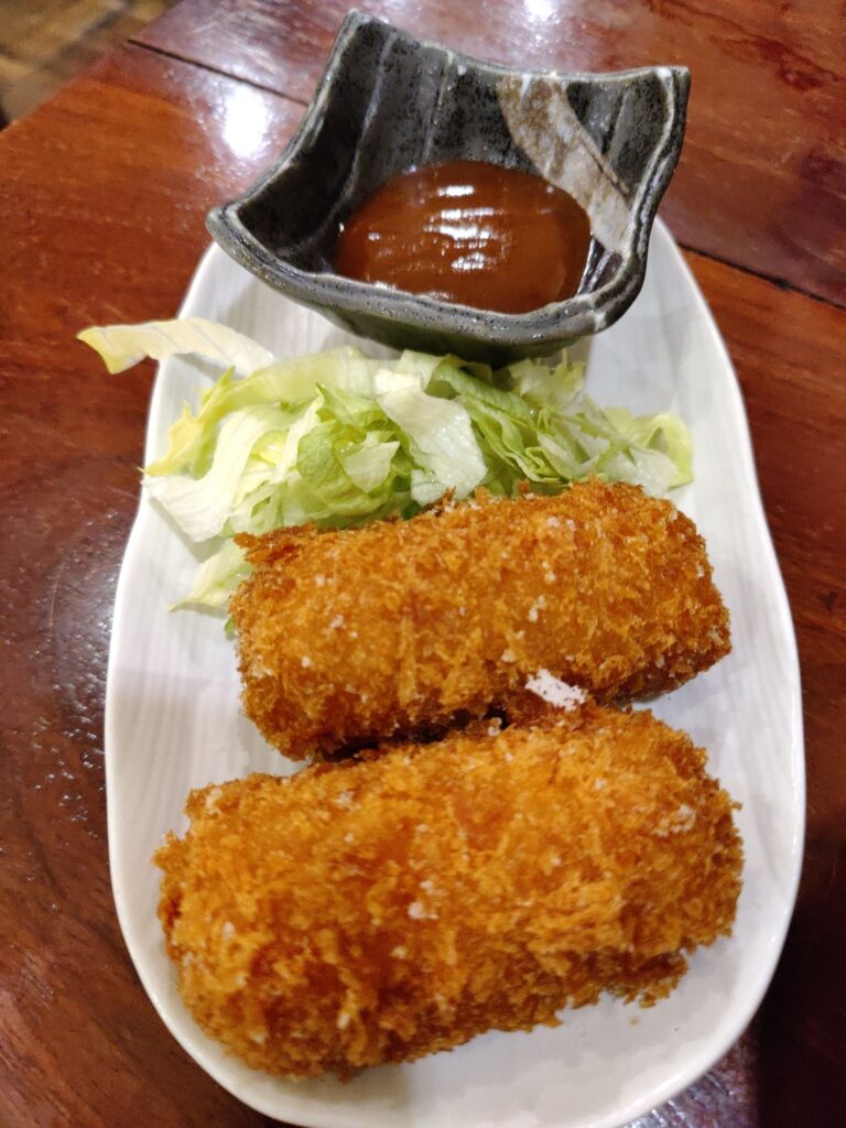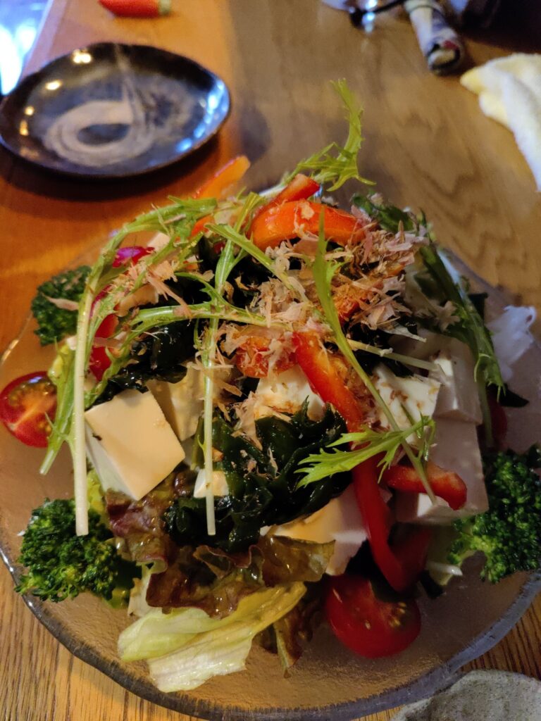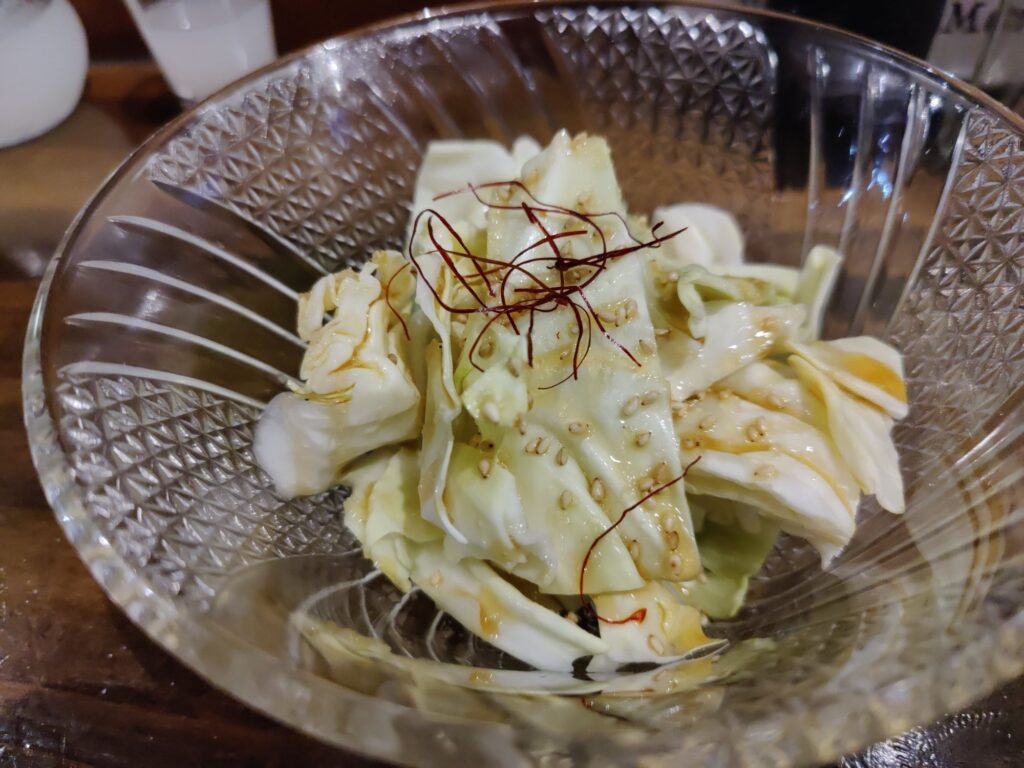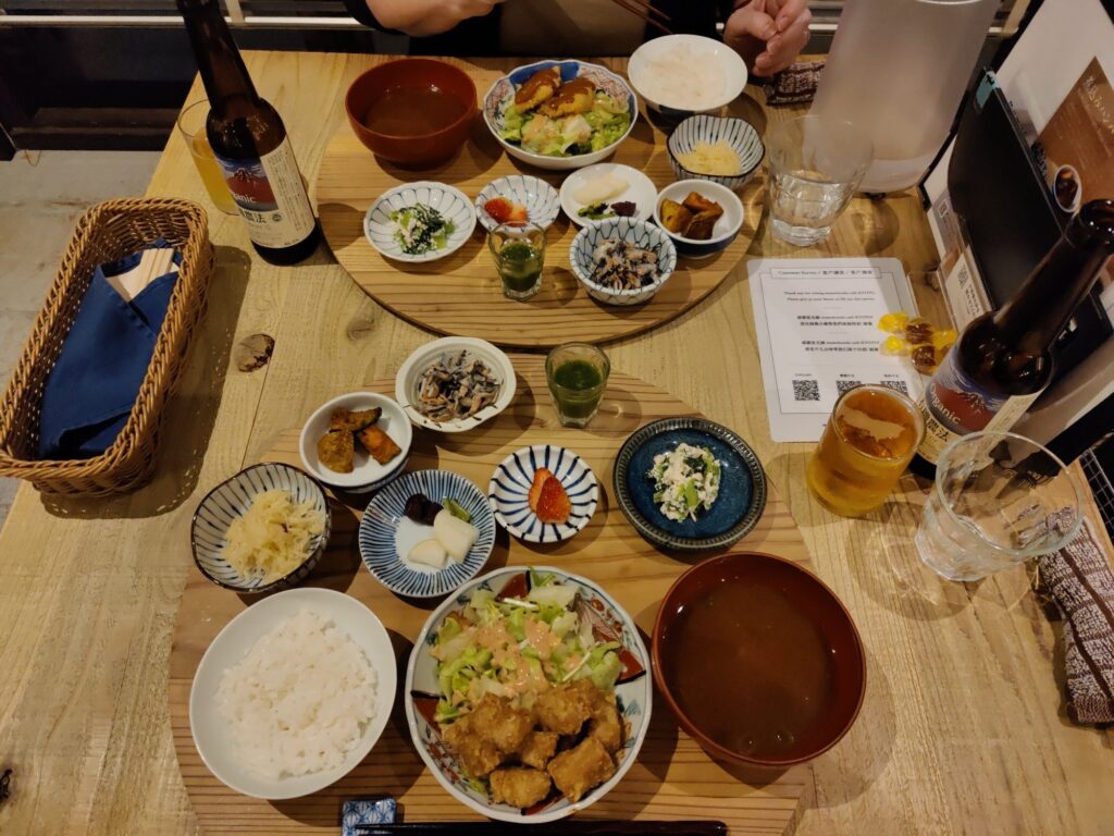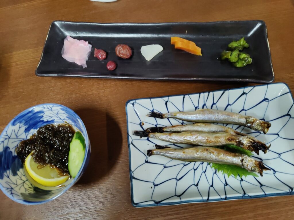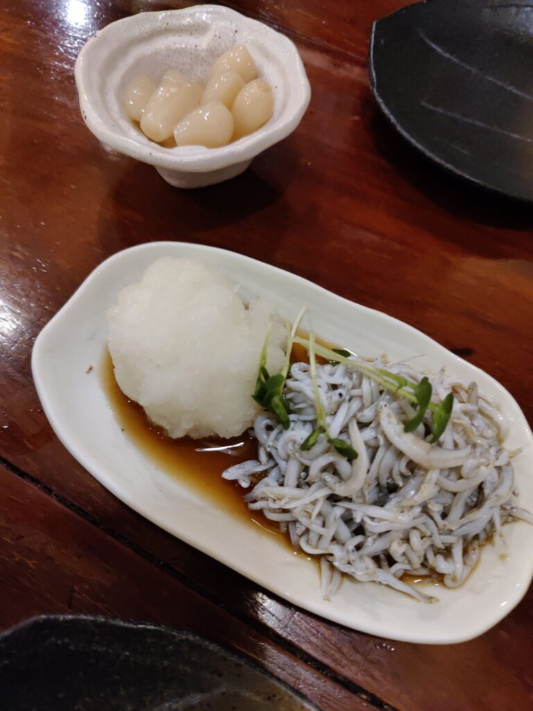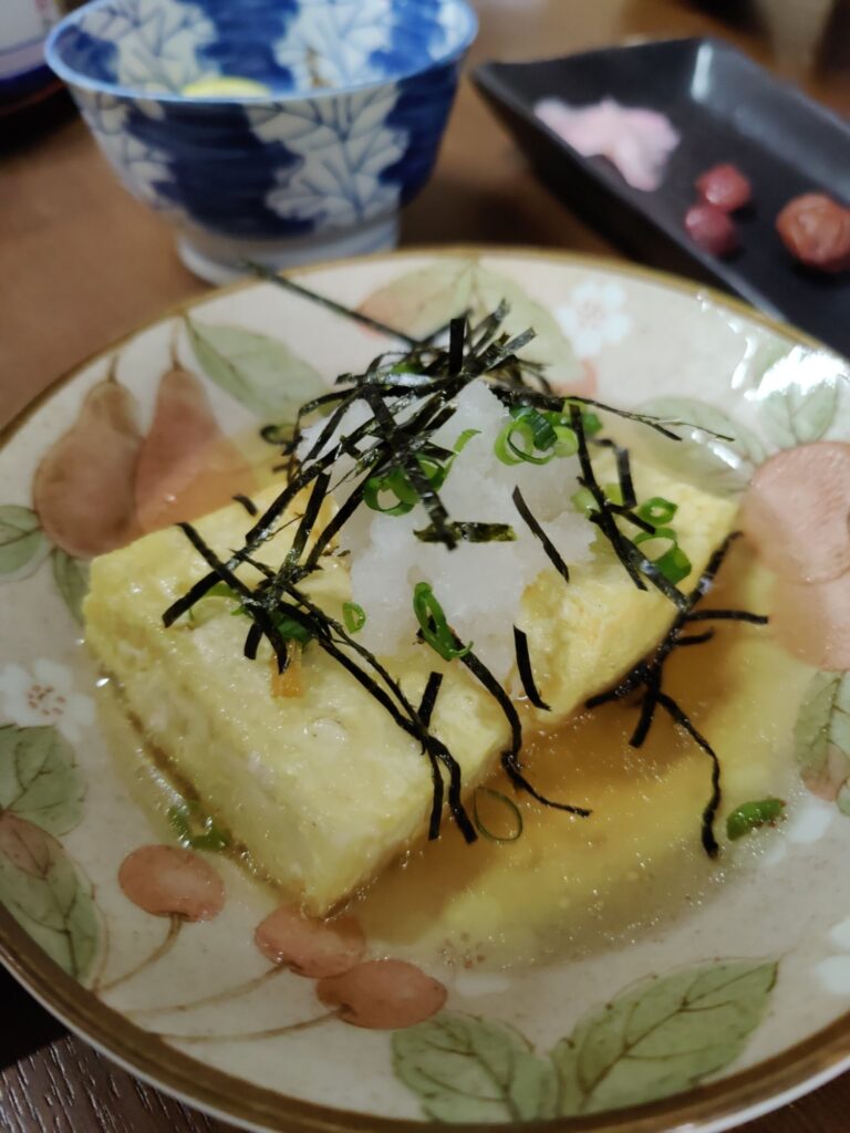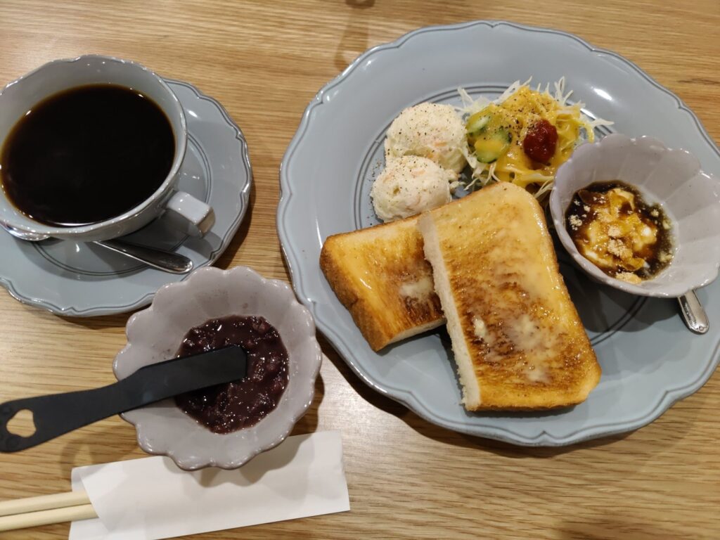 Frühstück im Café Chikara. Mutter hat den Kartoffelsalat gemacht, die Tochter das Anko (Muß aus Azuki-Bohnen). Sehr lecker!