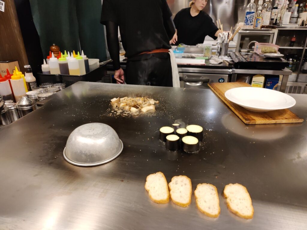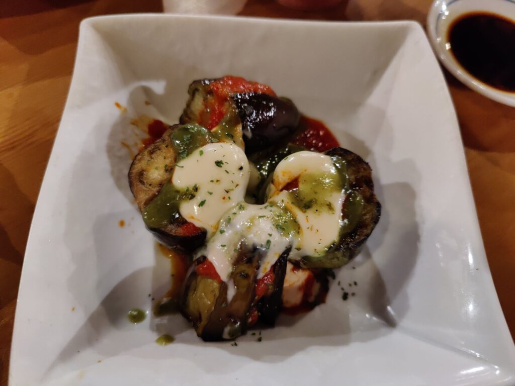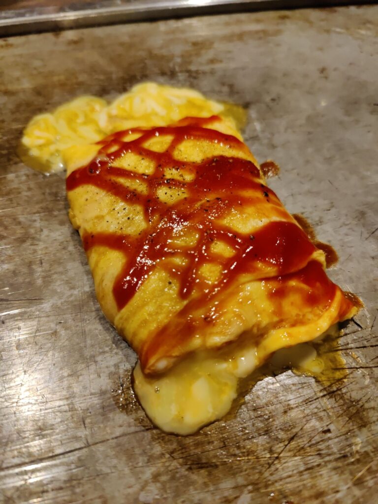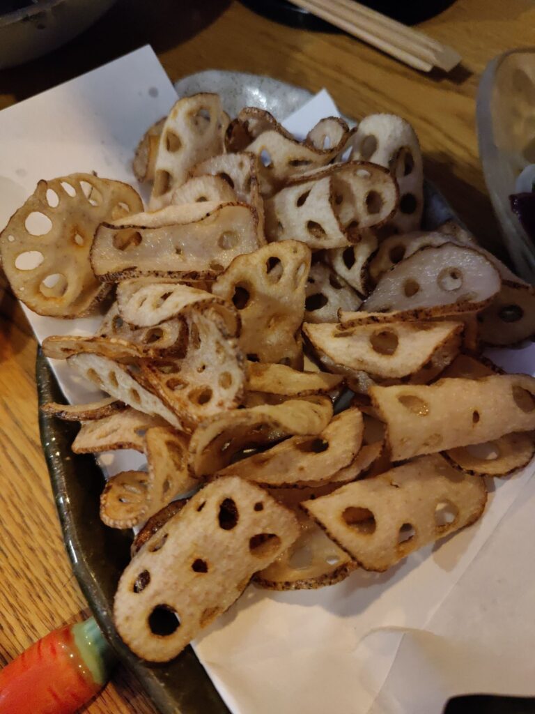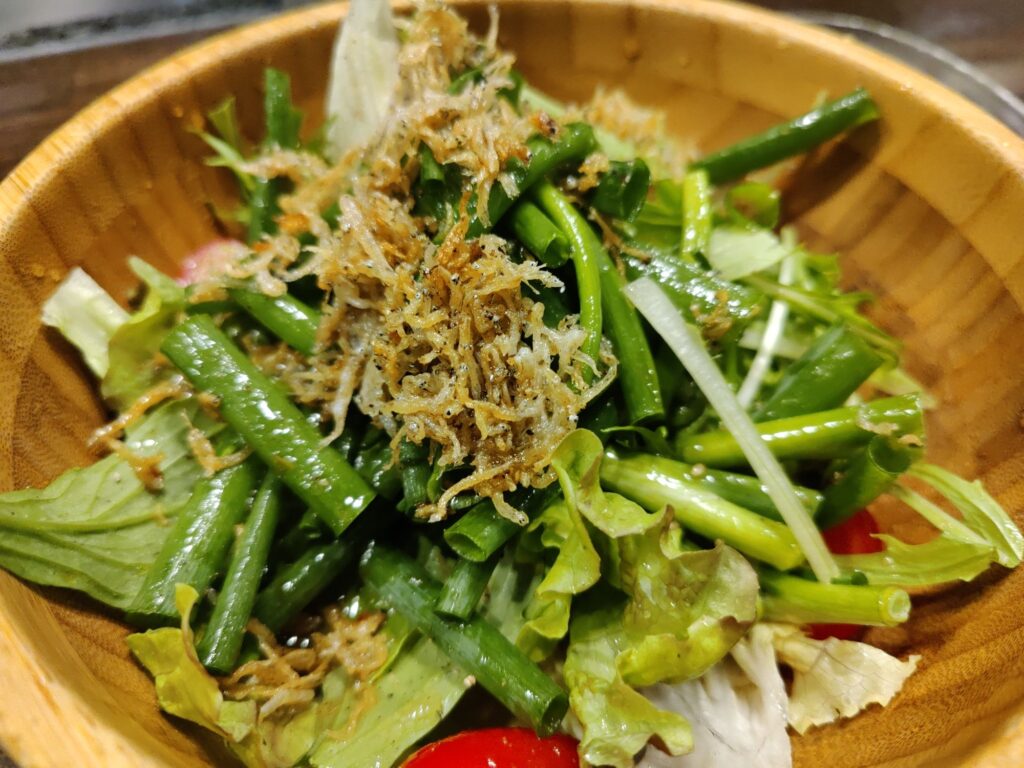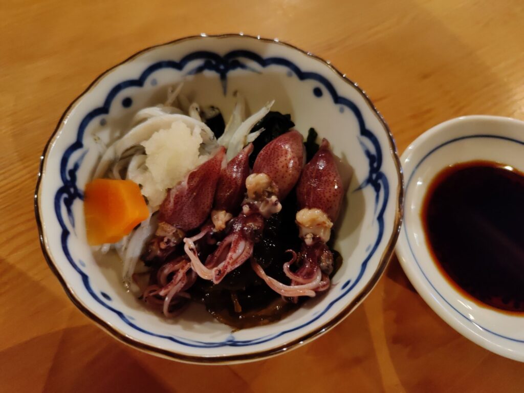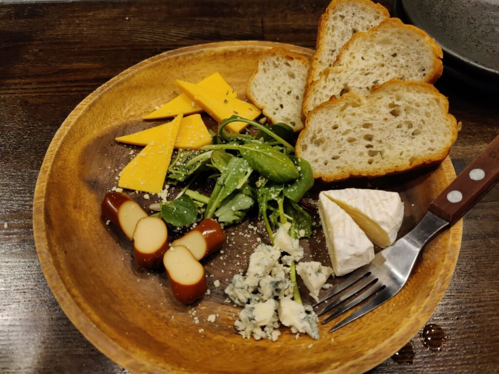 Frühstück im Café Chikara. Mutter hat den Kartoffelsalat gemacht, die Tochter das Anko (Muß aus Azuki-Bohnen). Sehr lecker!