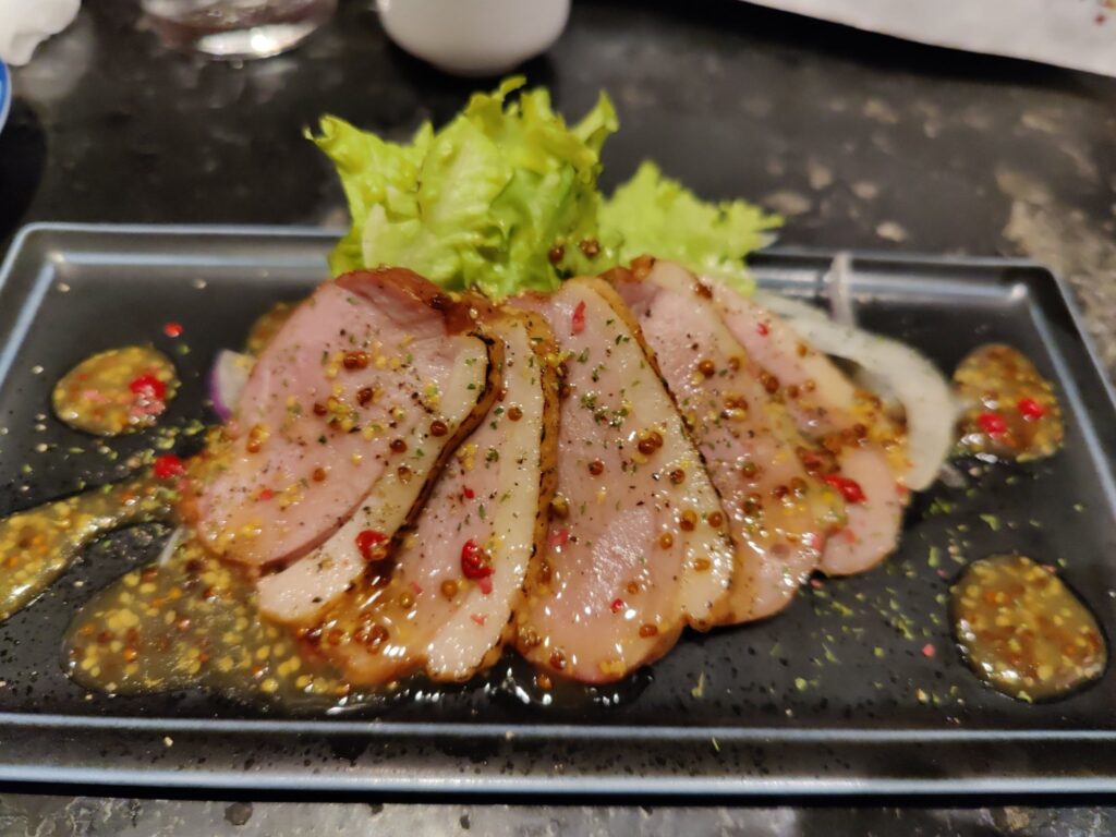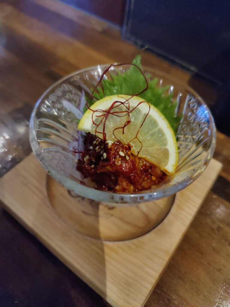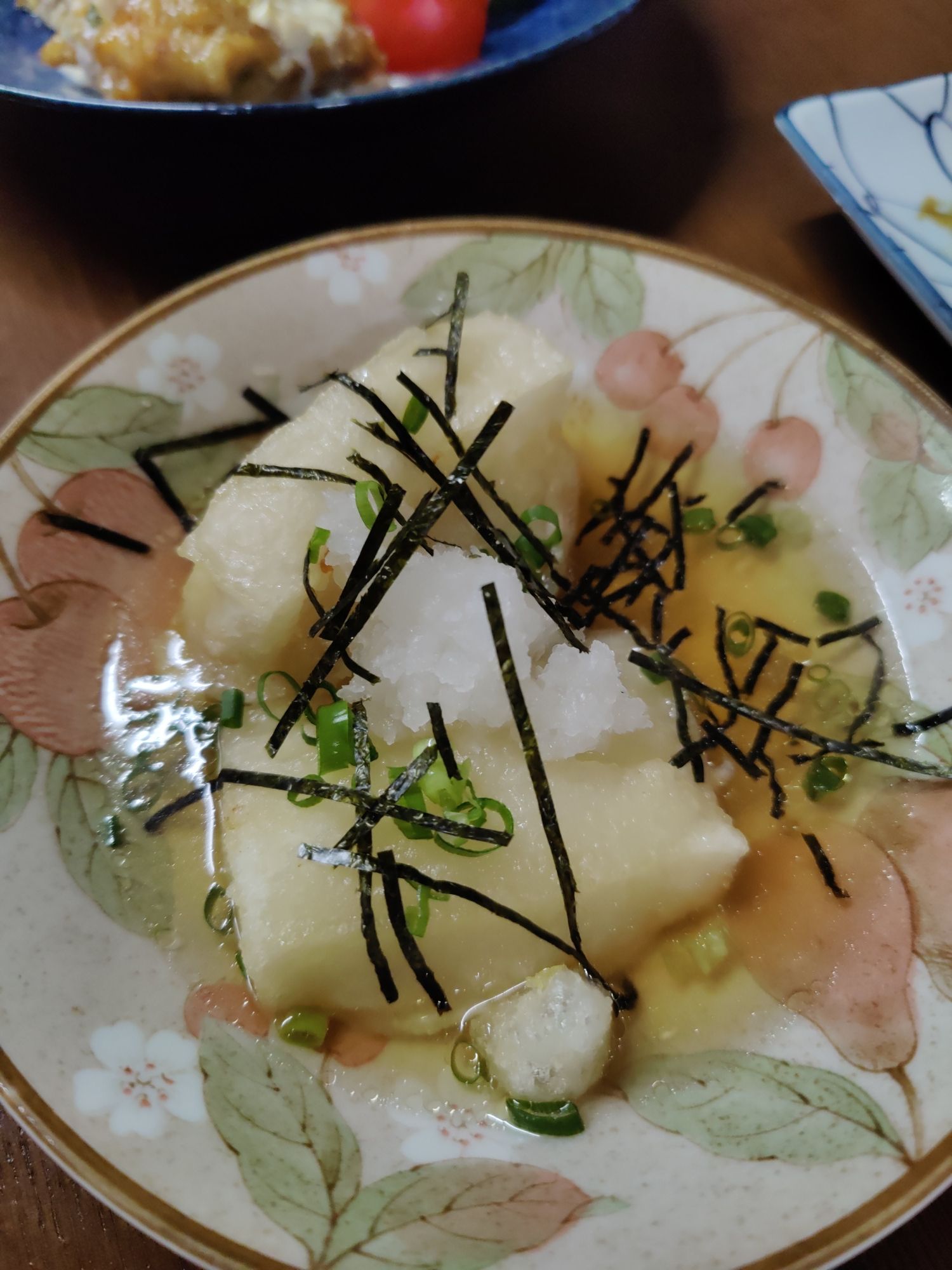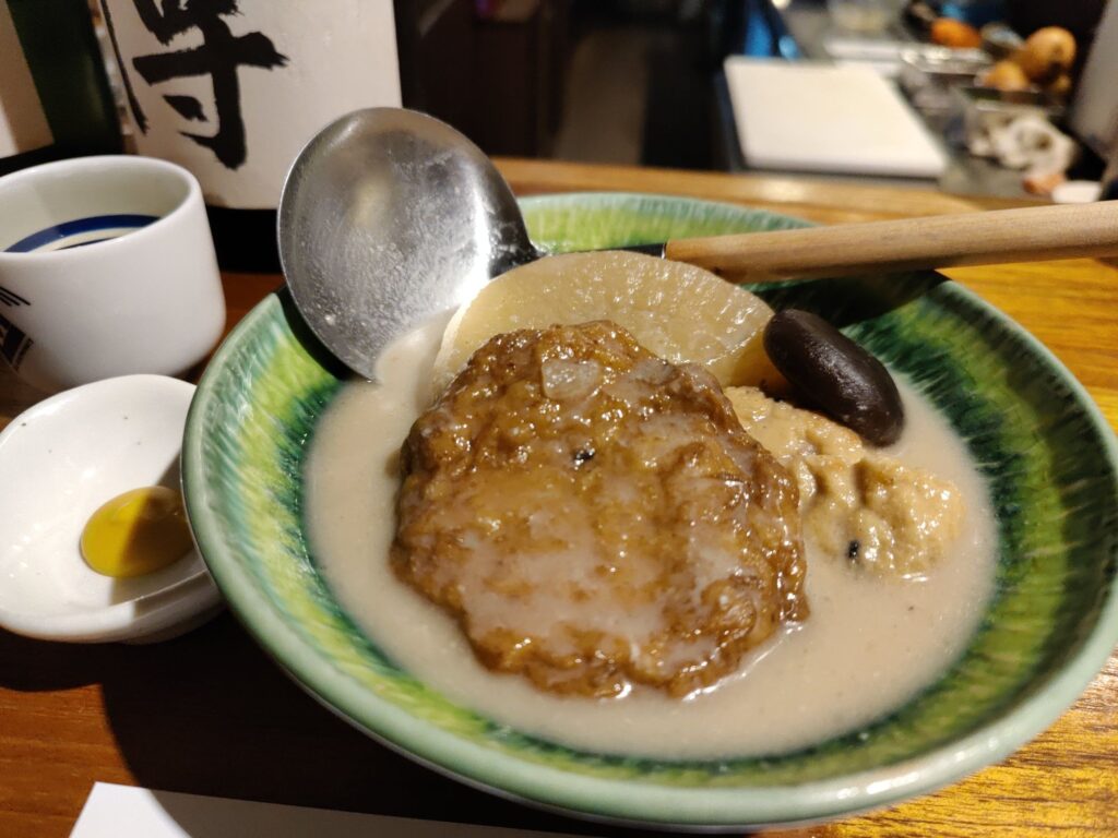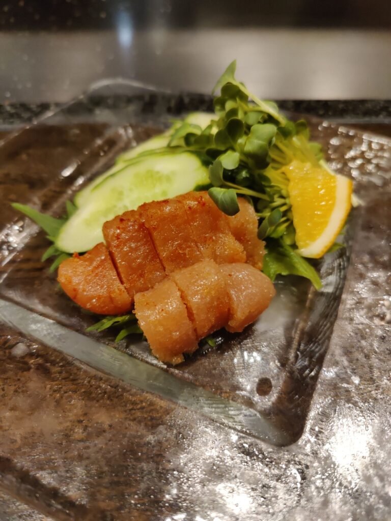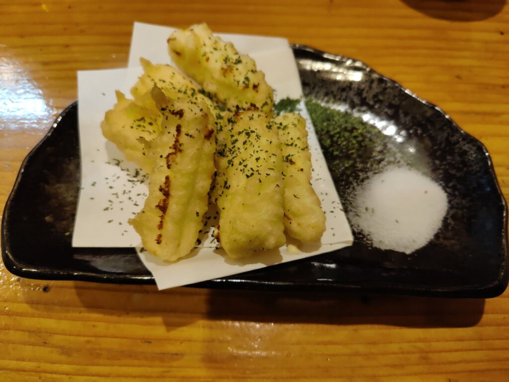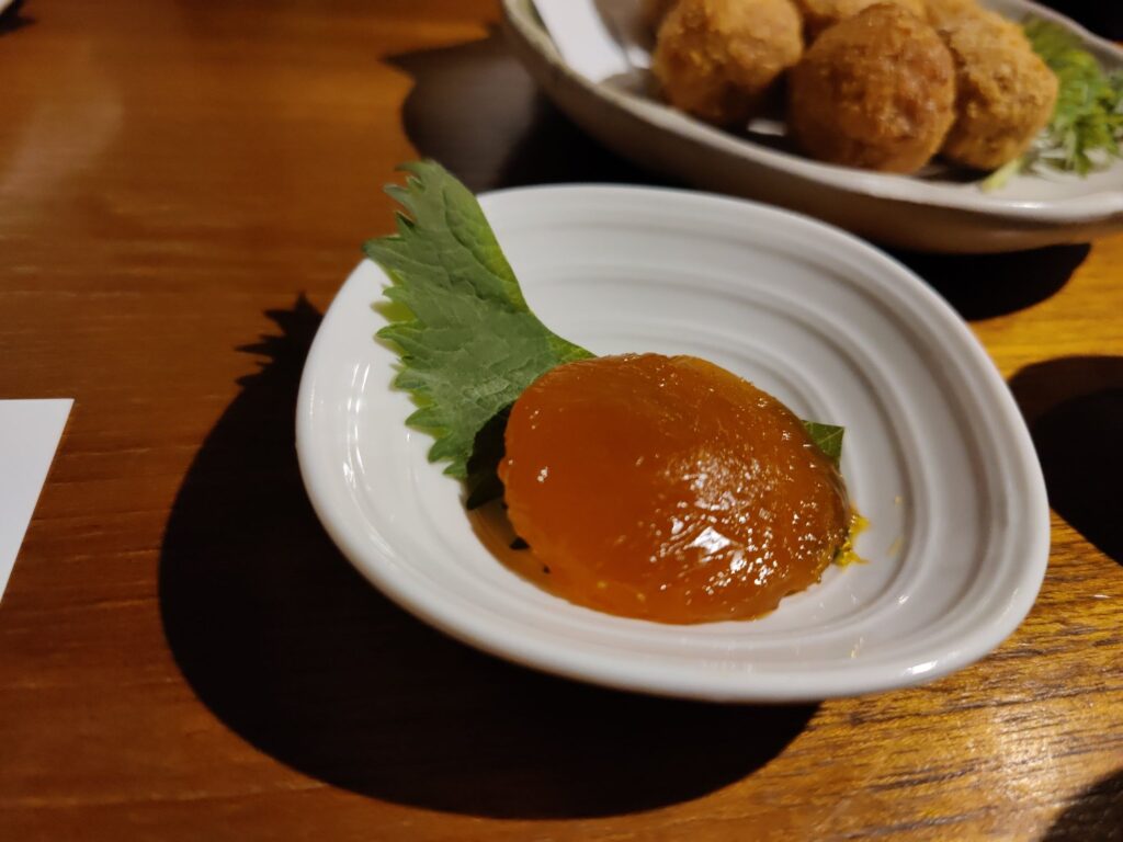 Frühstück im Café Chikara. Mutter hat den Kartoffelsalat gemacht, die Tochter das Anko (Muß aus Azuki-Bohnen). Sehr lecker!