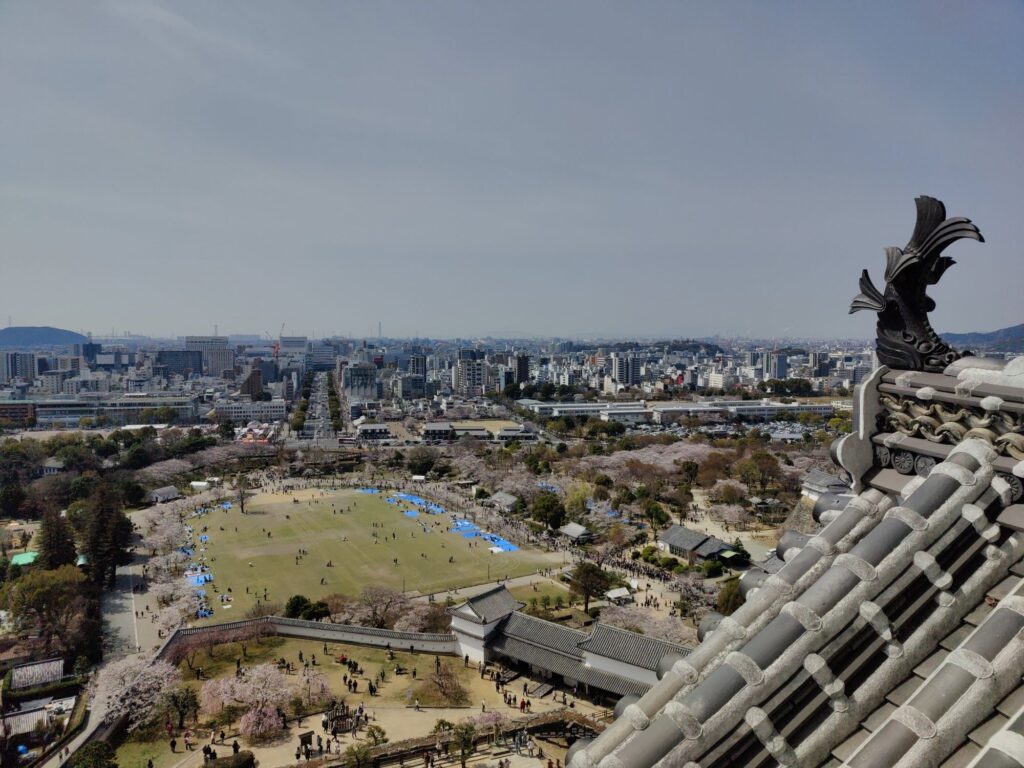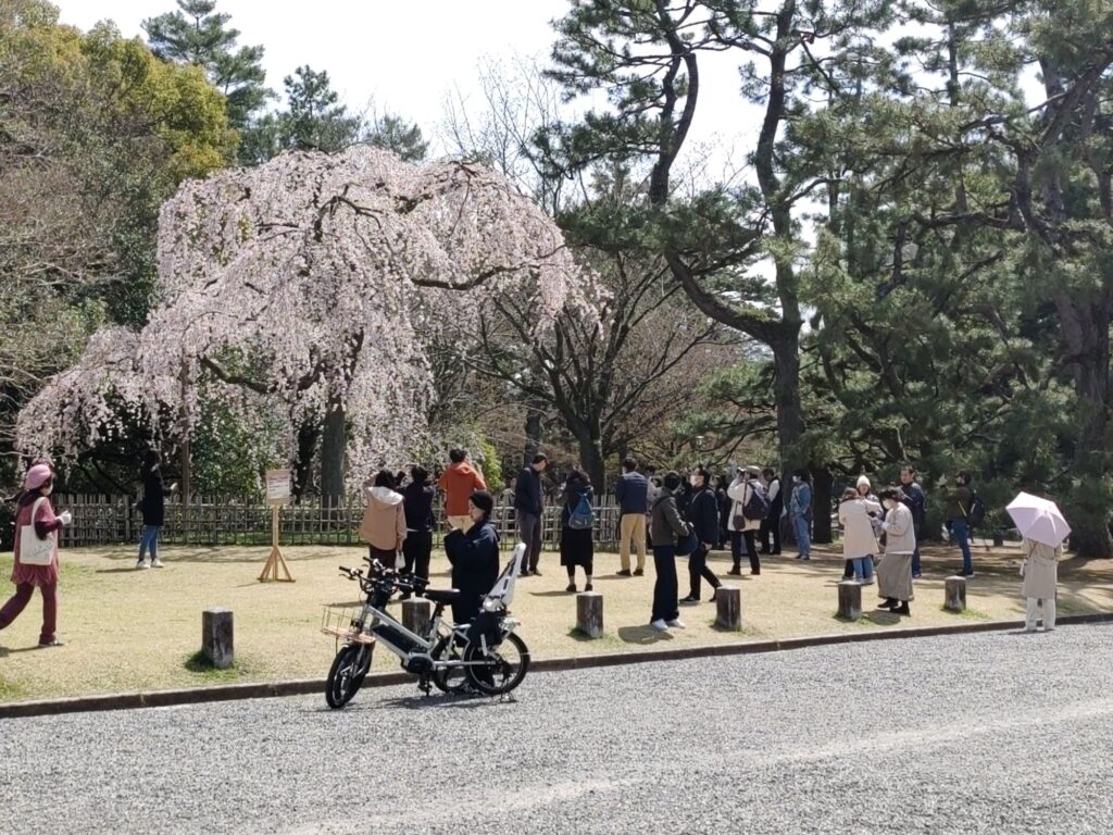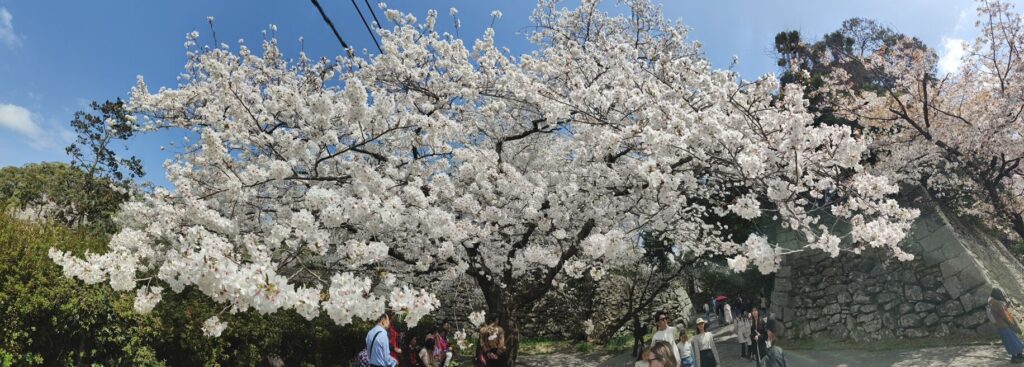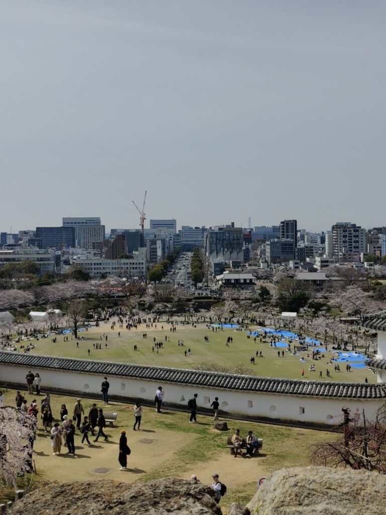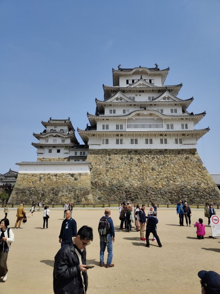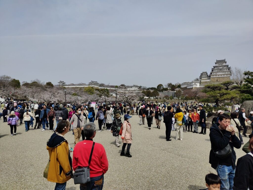 Kurz nach 12 Uhr fährt unser Shinkansen nach Shin-Yokohama. Wir verlassen die Burganlage um 11 Uhr. Menschenmassen überall. Auf dem Vorplatz wird schon gepicknickt. Die Warteschlange für Eintrittskarten sieht nach mindestens 2 Stunden aus.