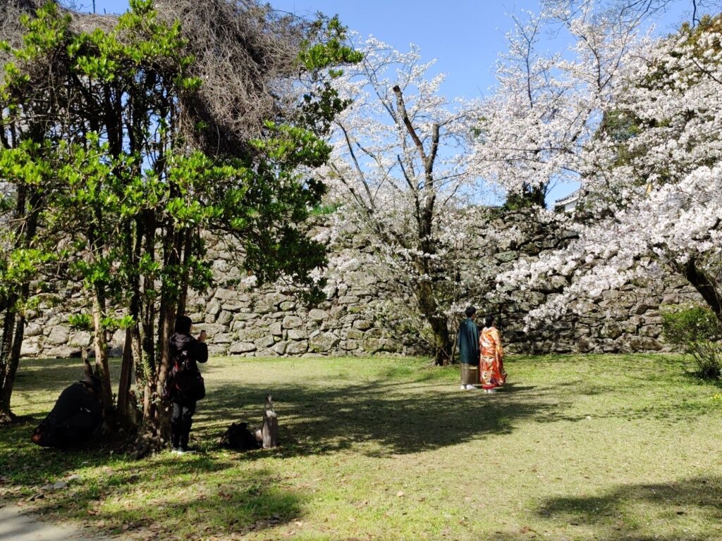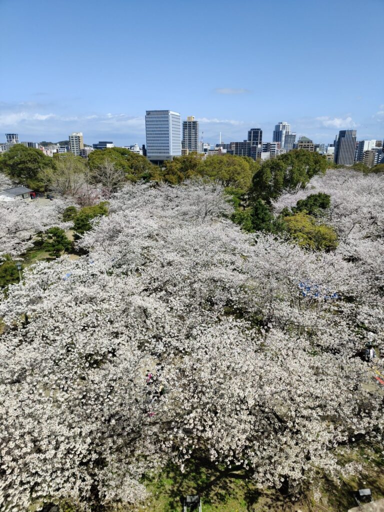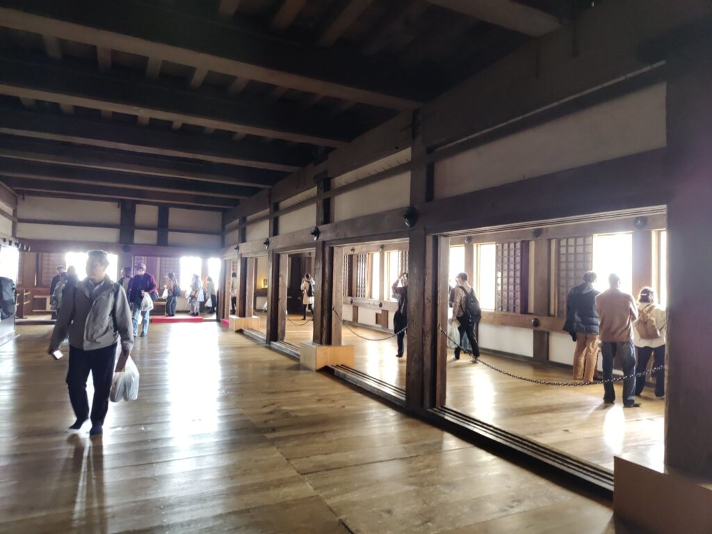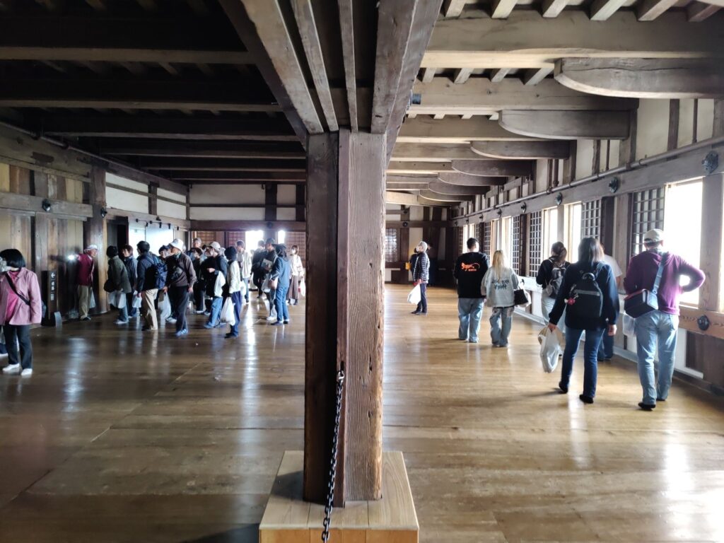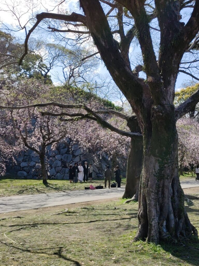 Kurz nach 12 Uhr fährt unser Shinkansen nach Shin-Yokohama. Wir verlassen die Burganlage um 11 Uhr. Menschenmassen überall. Auf dem Vorplatz wird schon gepicknickt. Die Warteschlange für Eintrittskarten sieht nach mindestens 2 Stunden aus.