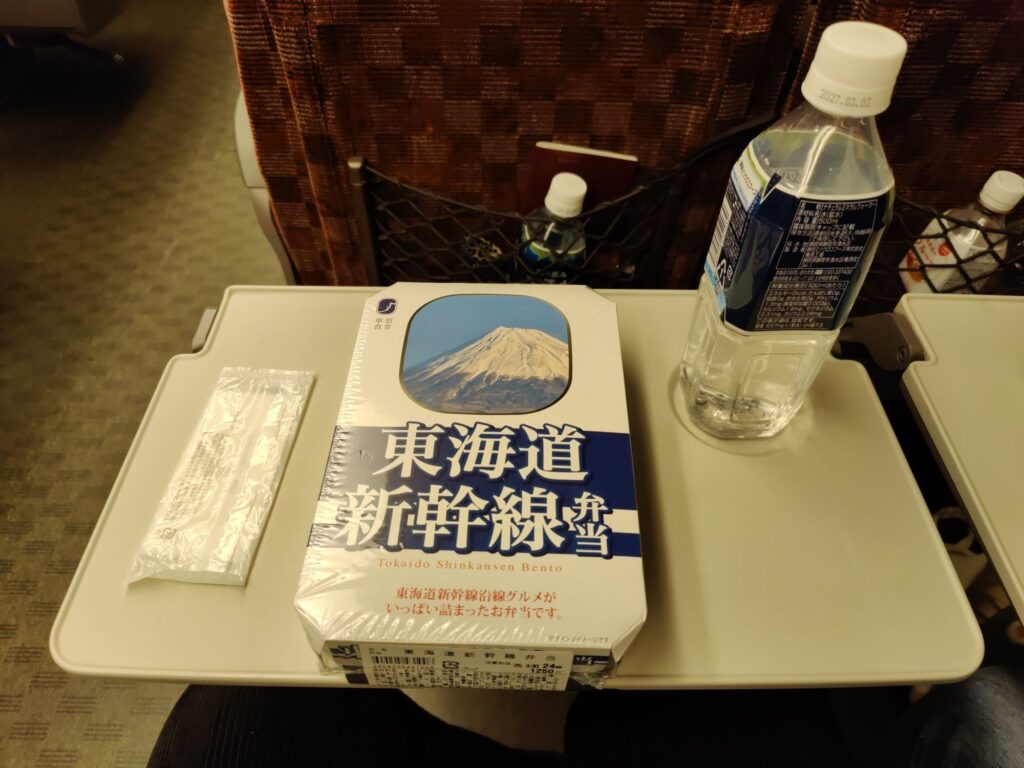 Obligatorisches Mittagessen im Shinkansen. Die Damen aus dem Café gaben uns Nachtisch mit. Kurz vor unserem Ziel fahren wir am Fuji vorbei.
