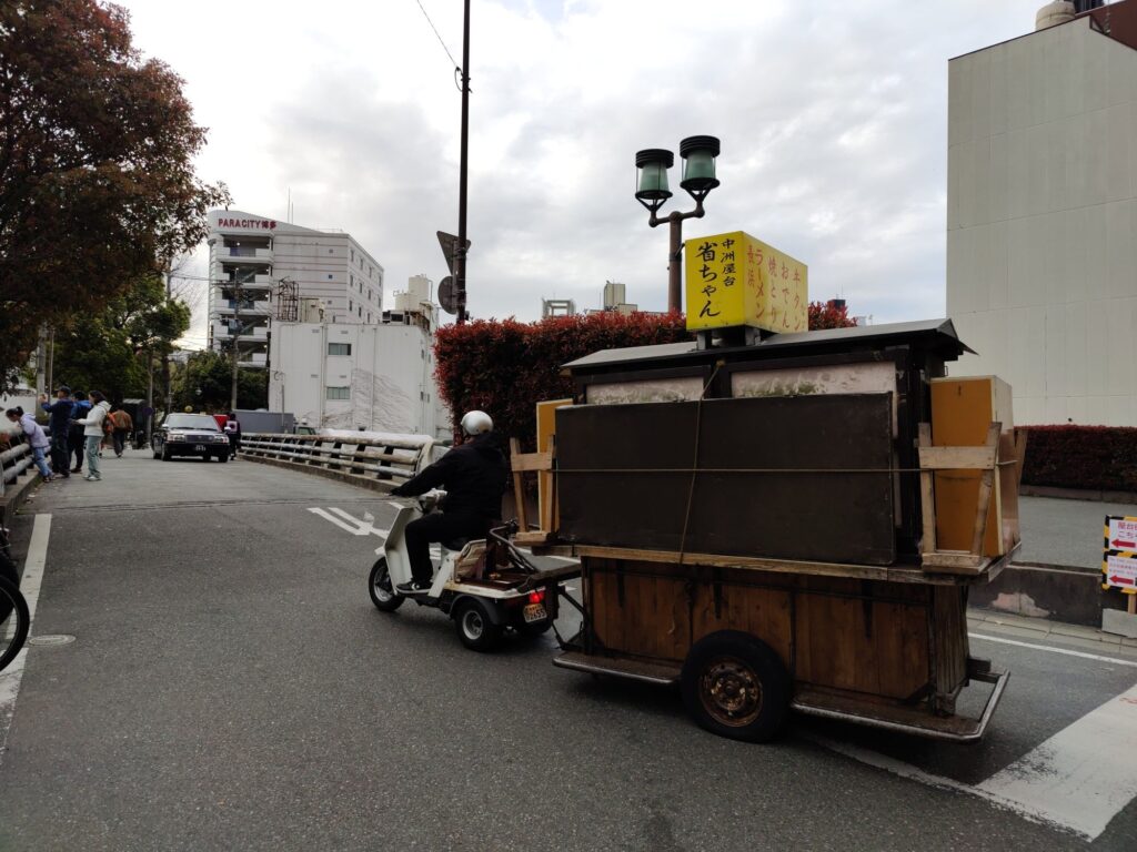 Auf dem Weg zum Bahnhof stellt sich uns ein Rikishi (Sumo-Ringer) in den Weg.